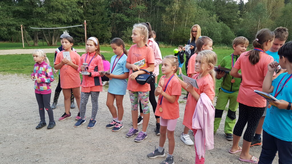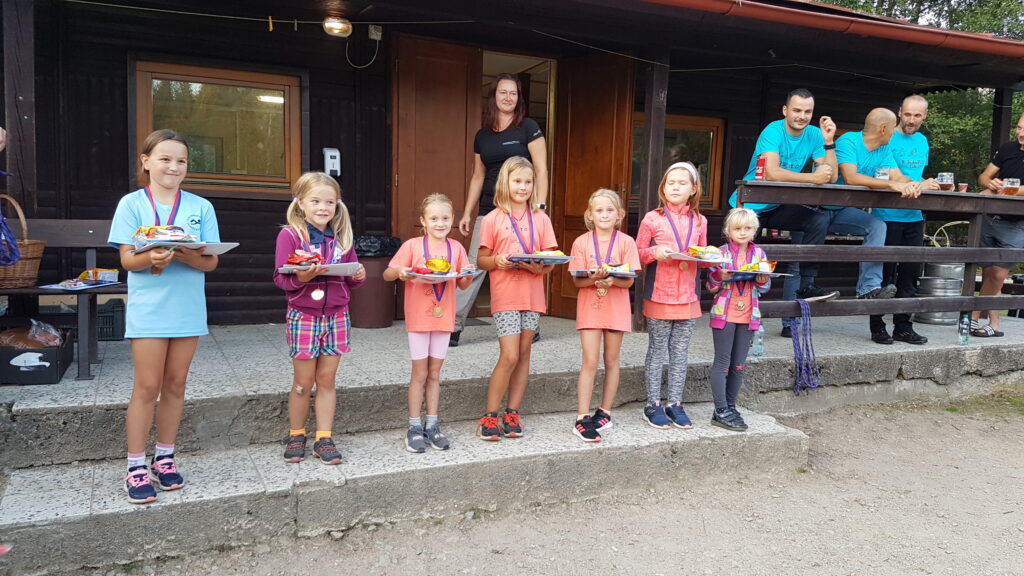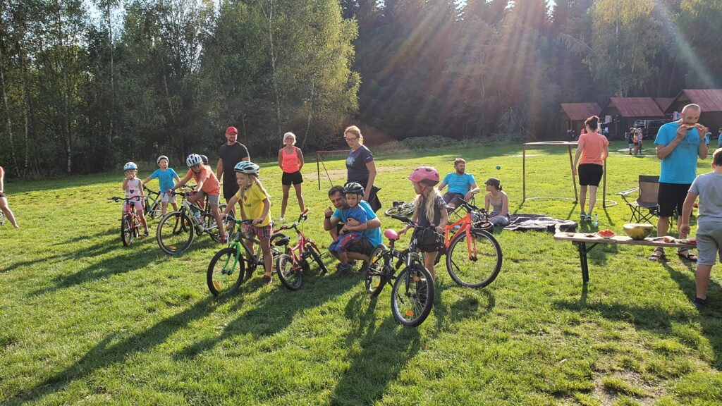 Postupně se vrátili všichni, jak jinak se skvělou náladou. Ta tam panovala od úplného začátku až do konce. V 13:30 jsme měli oběd, chvíli odpočinek a odpoledne pokračovalo soutěžemi pro děti. Hlavní soutěž – jízda zručnosti na kole, která byla rozdělená na starší a mladší, kluky a holky – si užili jak děti, tak dospělí. Děti závodily jako o život a patřičně byly odměněny úplně všechny. S úsměvem si všechny převzaly diplomy, medaile, dobrůtky a každý si vylosoval lístek do tomboly, která následovala hned po vyhlášení výsledků ze závodu. I z tomboly si děti odnesly skvělé ceny.